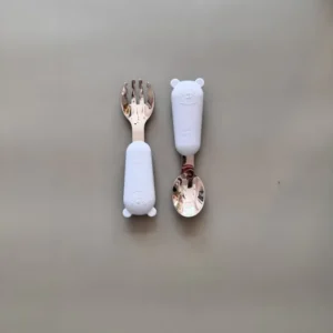 Nok Nok. Κουτάλι και Πιρούνι από ανοξείδωτο ατσάλι και σιλικόνη – Ice Grey 6m+