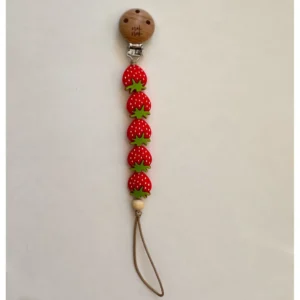 Nok Nok.Κλιπ πιπίλας με χάντρες σιλικόνης – STAWBERRIES – Cream with Strawberry
