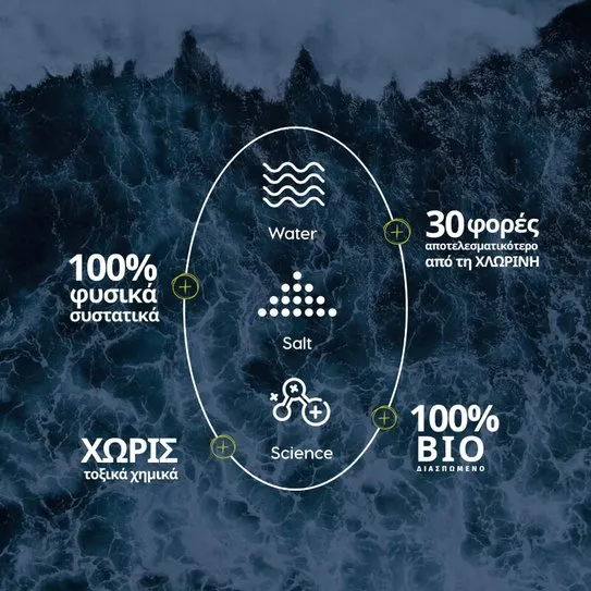ΣΥΣΤΑΤΙΚΑ: Πάνω από 99,8% ηλεκτρολυμένο νερό συν μια μικροσκοπική ποσότητα αλατιού και