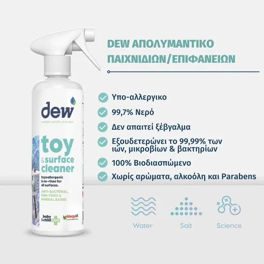 καθαρισμό και την απολύμανση των παιχνιδιών και των χώρων παιχνιδιού του μικρού σας. Το Dew