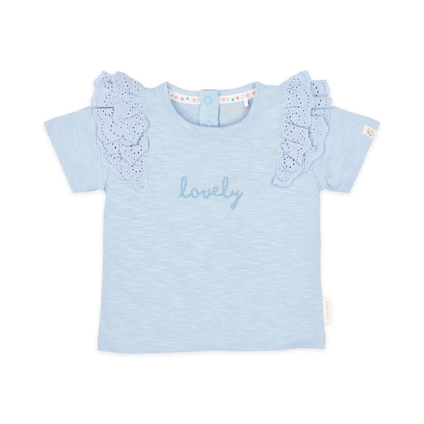 Τα βολάν στους ώμους προσθέτουν μια παιχνιδιάρικη νότα, ενώ η 3D λεπτομέρεια “Lovely” στο στήθος στέλνει ένα τρυφερό μήνυμα αγάπης. Φτιαγμένο από οργανικό βαμβάκι με πιστοποίηση Oeko-Tex, είναι φιλικό στο ευαίσθητο δερματάκι και στο περιβάλλον.