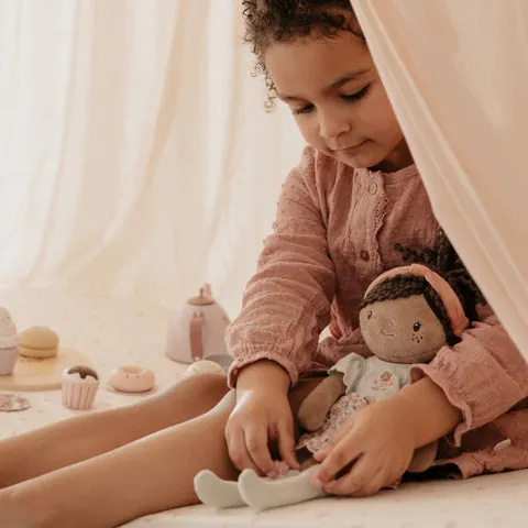 Με το μαλακό σώμα της, το χαρούμενο φλοράλ φορεματάκι και την παιχνιδιάρικη κοτσίδα, η Evi είναι ιδανική για αγκαλιές, παιχνίδι φαντασίας και τρυφερή παρέα.