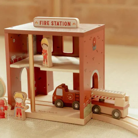 Αυτός ο ξύλινος σταθμός πυροσβεστικής διαθέτει όλα όσα χρειάζονται για συναρπαστικές αποστολές διάσωσης. Ανοίξτε τις πόρτες, κατεβείτε από τη σκάλα και μπείτε στο πυροσβεστικό όχημα. Το σετ περιλαμβάνει γενναίους πυροσβέστες, φανταστικές φλόγες και έναν φλεγόμενο κάδο.