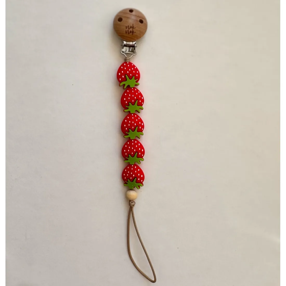 Cool κλιπ πιπίλας με χάντρες σιλικόνης και φυσικό ξύλο οξιάς. Το μωρό σου χρησιμοποιεί το κλιπ με ασφάλεια είτε ως μασητικό είτε ως κλιπ πιπίλας. Στη μία άκρη διαθέτει μεταλλικό κλιπ και στην άλλη άκρη θηλιά για το αγαπημένο του μασητικό, κουβερτάκι, πετσετάκι ή πιπίλα. Καταπραΰνει τα πονεμένα και φουσκωμένα ούλα ενώ παράλληλα κρατάει κοντά την πιπίλα του μωρού. Είναι ακίνδυνο και ανθεκτικό!
